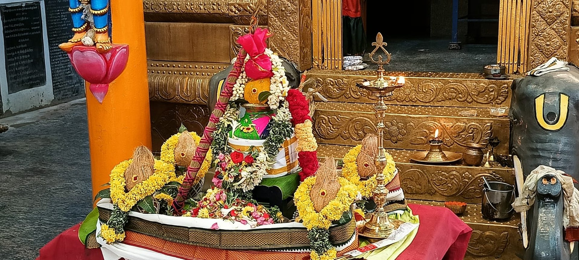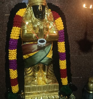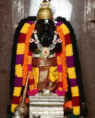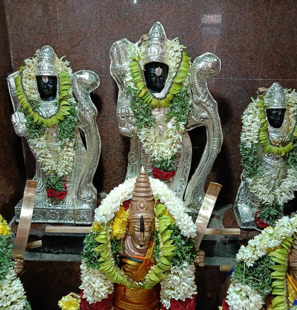 The honored gods of Sri Sitarama Lakshmana are enshrined here, representing goodness and unity. Sri Rama towers at 2 feet, with Lakshmana devotedly beside him at 1.30 feet, and Sita, radiating grace, standing at 1.75 feet.